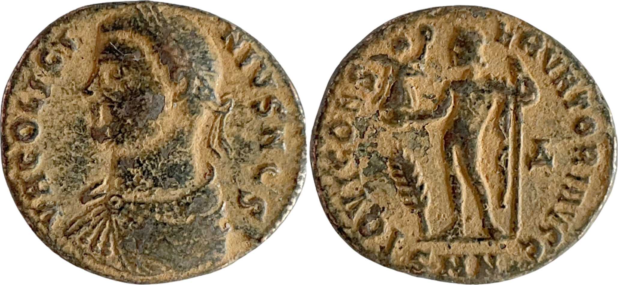 IOVICONS-ERVATORIAVGG [IOVI CONSERVATORI AVGG]; Jupiter stg. l., chlamys across l. shoulder, leaning on sceptre, holding Victory on globe. Branch in left field, Δ in right field. SMN in exergue.