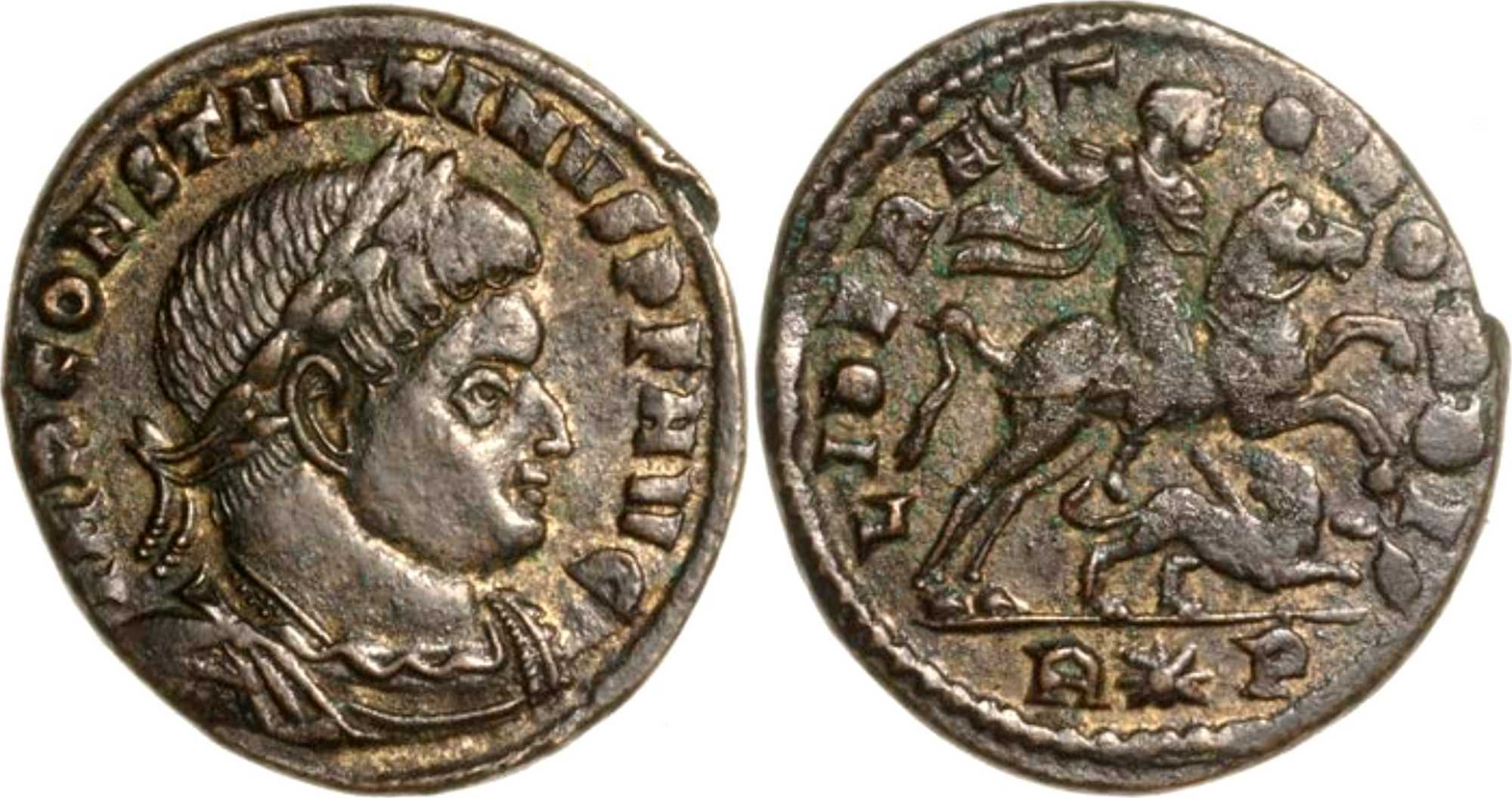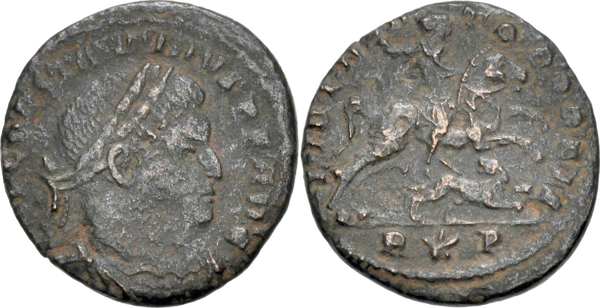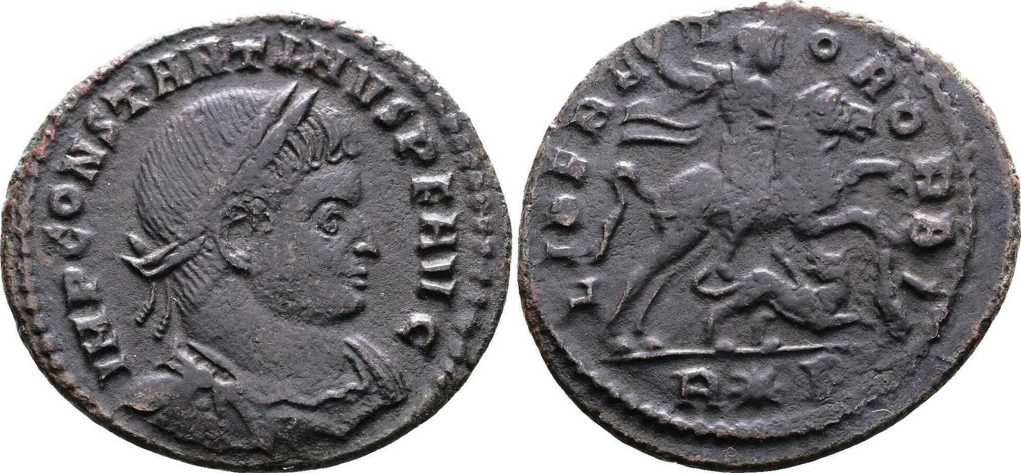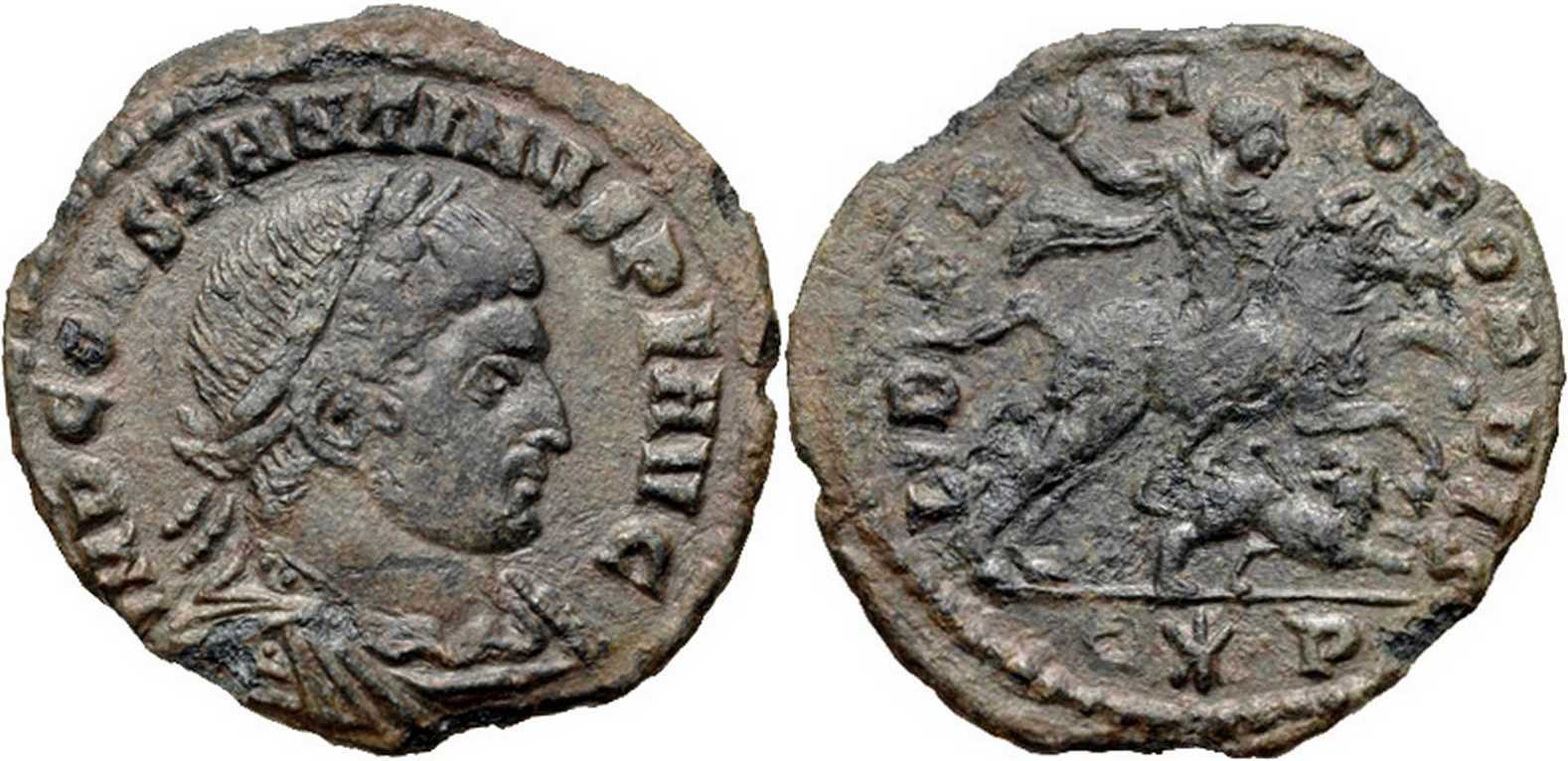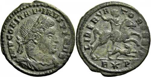 Cohen lists this type for Constantine (Cohen, vol. VII, p. 265, no. 317) and also for Licinius (Ibid., p. 201-202, no. 132-133): with R*S or RS (Rome) and ALE (Alexandria) in exergue.