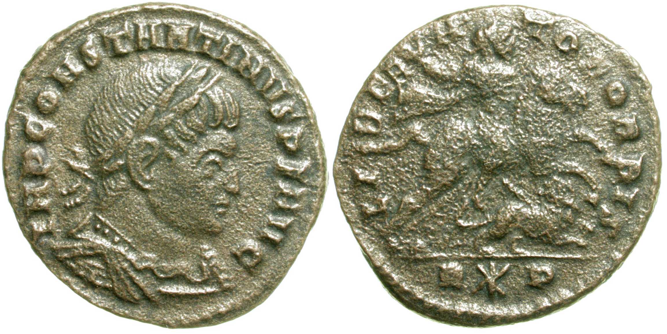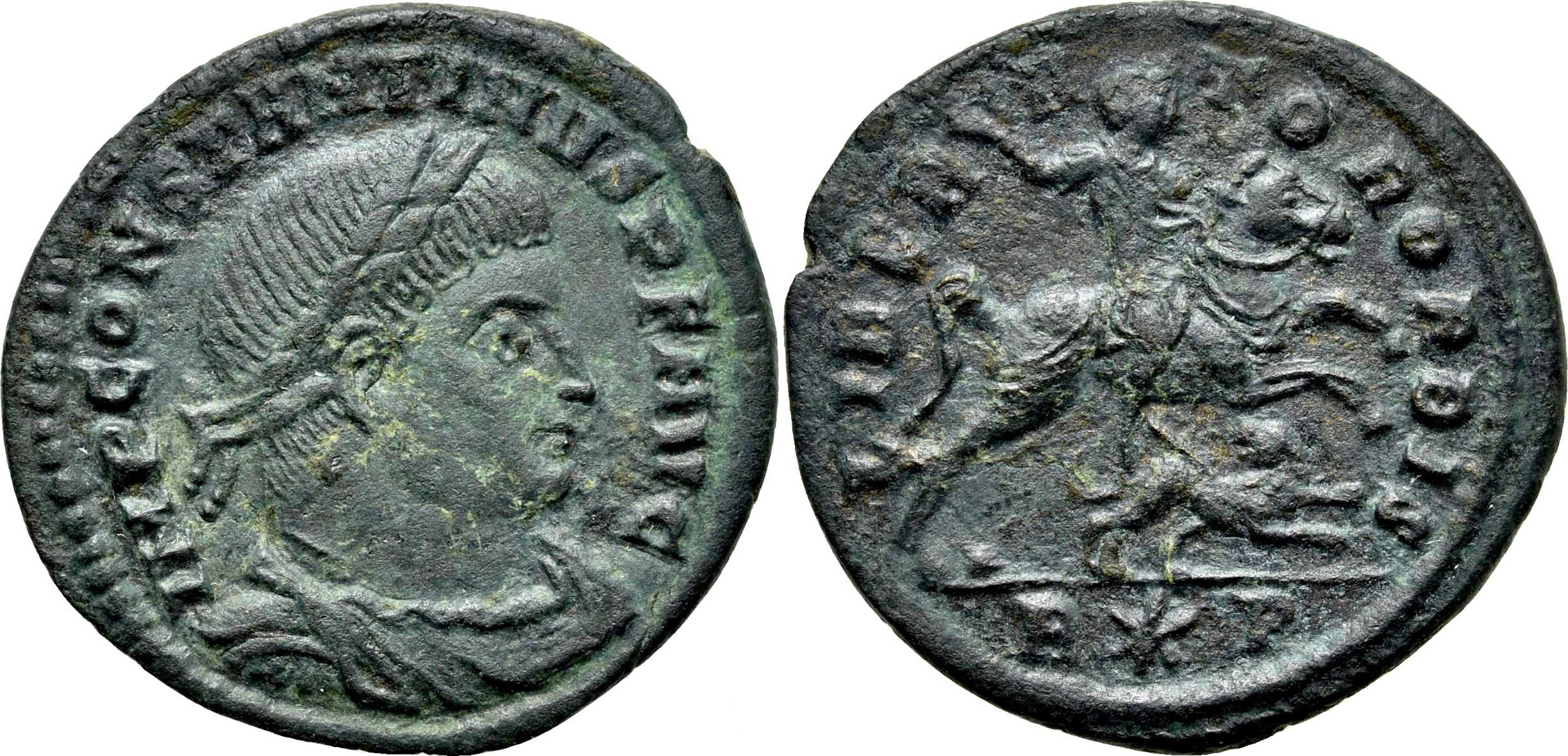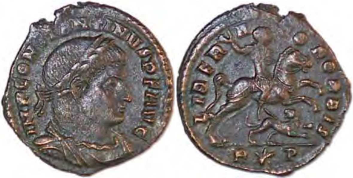 Type is listed also in RBC (only for Constantine I, no. 234CI, p. 31 and plate 14) and in: Meixner, I., "Neki kovovi iz nalaza kod Stoca koje ne poznaje najnovija radnja Sutherlanda »Roman Imperial Coinage«, VI sv. 1967. godine" [Some coins from Stoca hoard which are unlisted in the latest Sutherland's work "Roman Imperial Coinage" vol. VI, 1967], Numizmatičke vijesti, vol. XVI/27, 1969, p. 16-18 and plate V (only for Licinius).