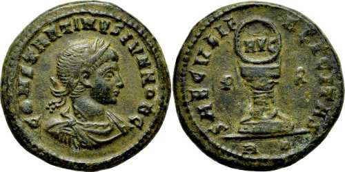 CONSTANTINVSIVNNOBC [CONSTANTINVS IVN NOB C]; bust r., laur., dr., cuir.