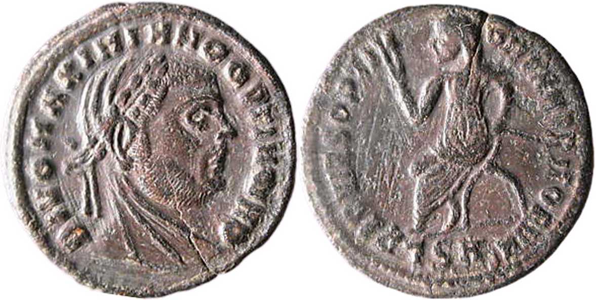 - from Dirty Old Coins; rev. legend breaks I-M-O [click for picture];