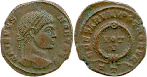 RIC VII, TICINUM [after 153], CRISPUS, UNLISTED BUST TYPE AND REVERSE LEGEND [IRREGULAR COIN]