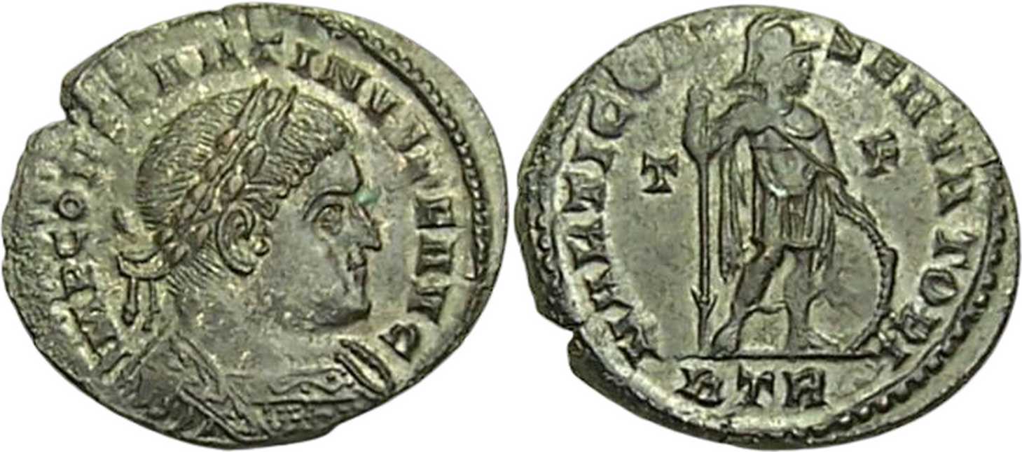 IMPCONSTANTINVSPFAVG [IMP CONSTANTINVS P F AVG]; bust r., laur., cuir. [B5].