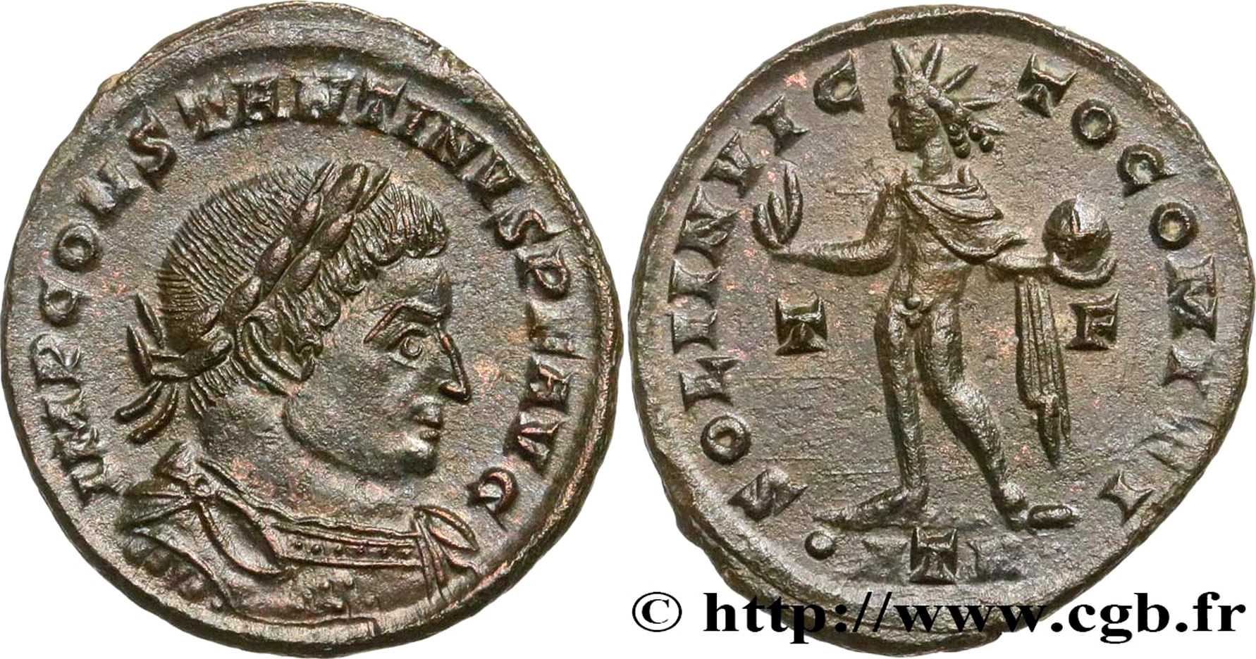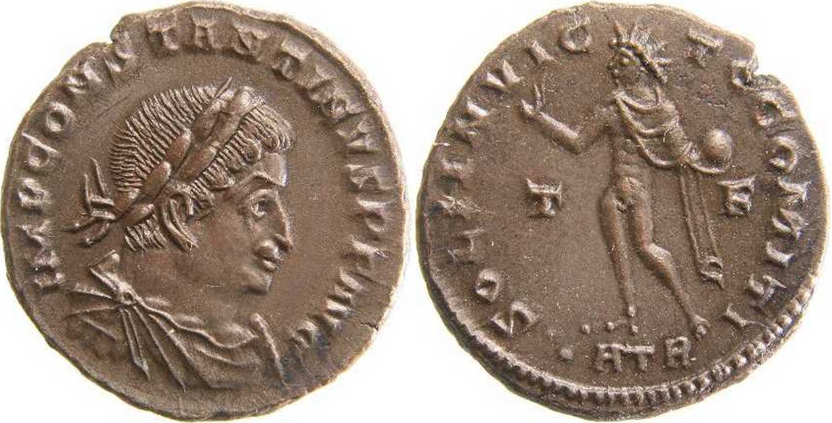 IMPCONSTANTINVSPFAVG [IMP CONSTANTINVS P F AVG]; bust r., laur., dr., cuir. [B4].