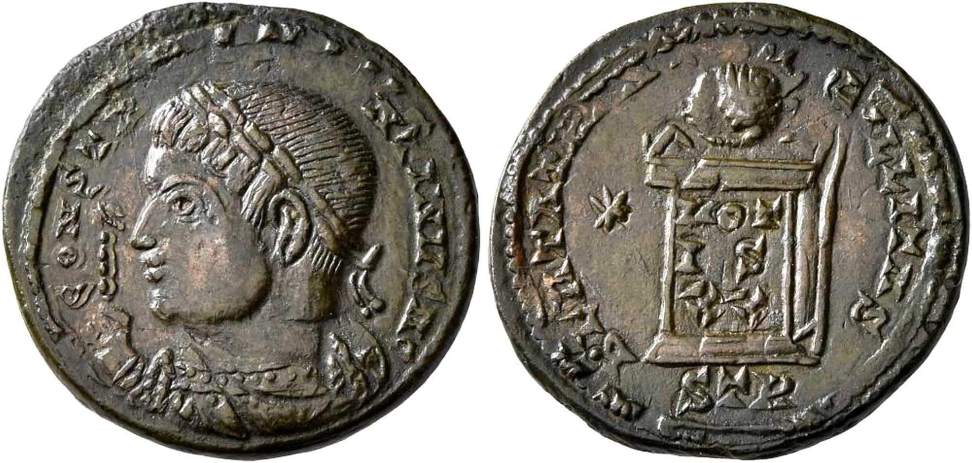 CONSTA-NTINVSAG [CONSTANTINVS AG]; bust l., laur., wearing trabea, eagle-tipped sceptre in r. hand.