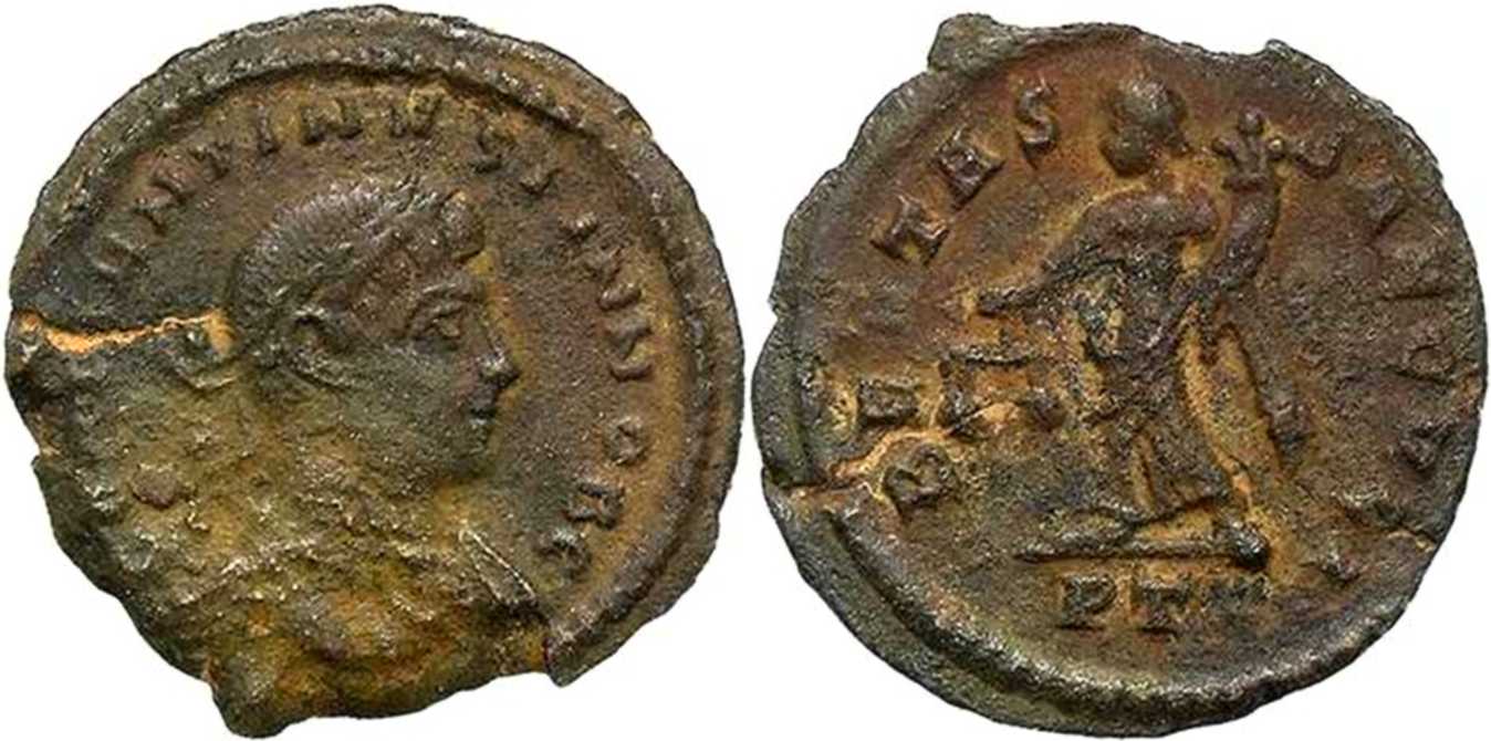 CONSTANTINVSIVNNOBC [CONSTANTINVS IVN NOB C]; bust r., laur., dr., cuir.