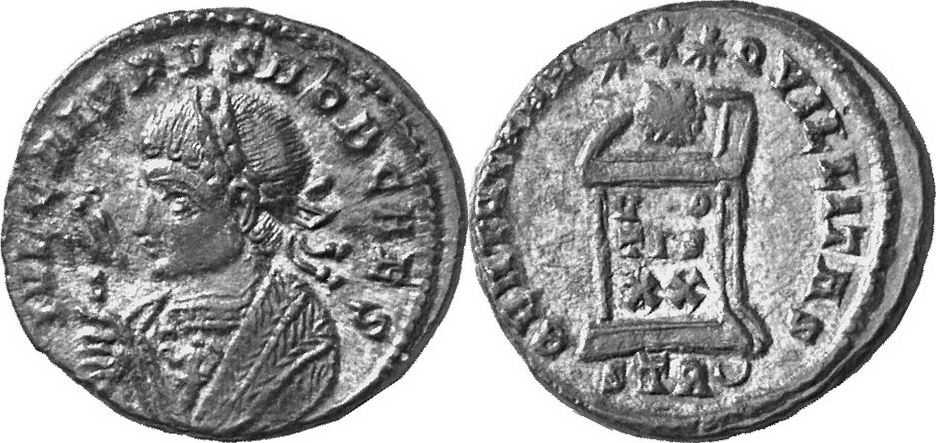 UNLISTED BUST TYPE - K3 l. Not attested for obv. legend 5 (p. 201). Listed in RMBT (p. 58, no. 188; this coin). Should be listed in RIC after TRIER 426.