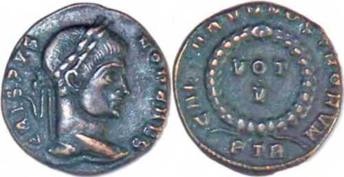RIC VII, TRIER [before 432], CRISPUS, UNLISTED REVERSE [IRREGULAR COIN]