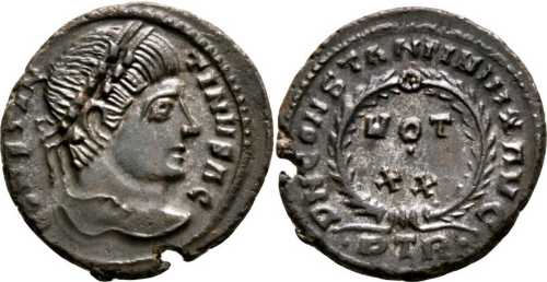DNCONSTANTINIMXAVG [D N CONSTANTINI MX (sic!) AVG]; laurel wreath enclosing VOT/XX. PTR in exergue.