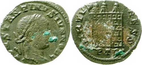 General note from p. 160: "The only disturbing feature of the post-324 bronze coinages is the appearance of both regular and irregular-looking coins of the types VIRTVS AVGG or CAESS, some of them with the Providentiae reverse, others of the type with four turrets familiar from the coinage of Arles. The specimens known to the present writer are very few and do not permit us to reconstruct the pattern of this coinage. The majority of these coins, recorded by Maurice, seem to have been part of the Cologne hoard and therefore regarded as valid currency. These irregular coins and their counterparts, struck at the same time by the mint of Arles, point to a major confusion in the financial administration in Gaul".