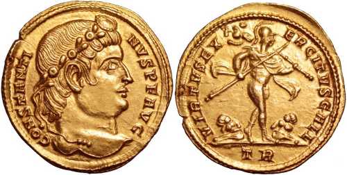 CONSTANTI-NVSPFAVG [CONSTANTINVS P F AVG]; head r., rosette-diadem.
