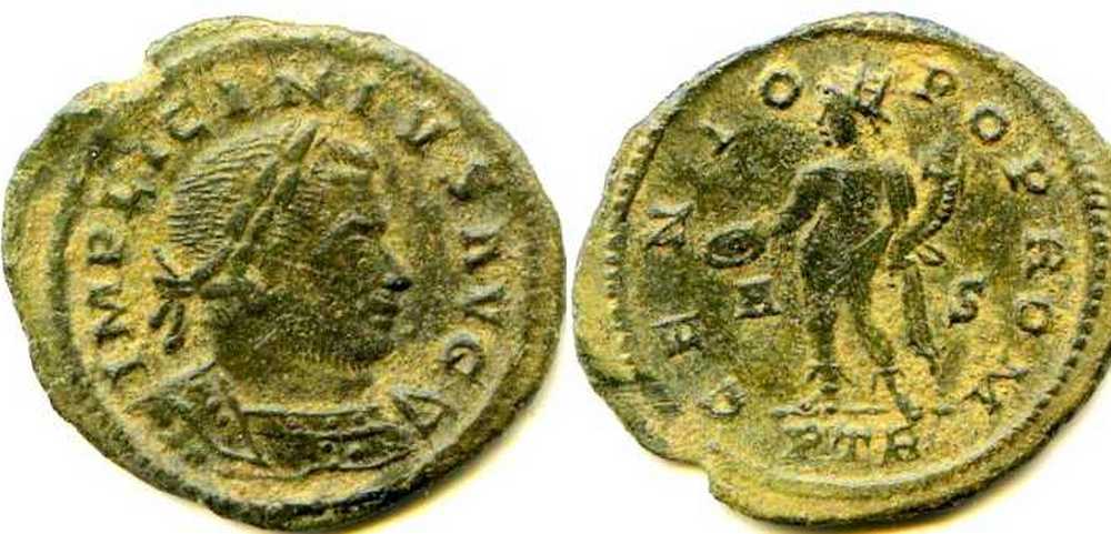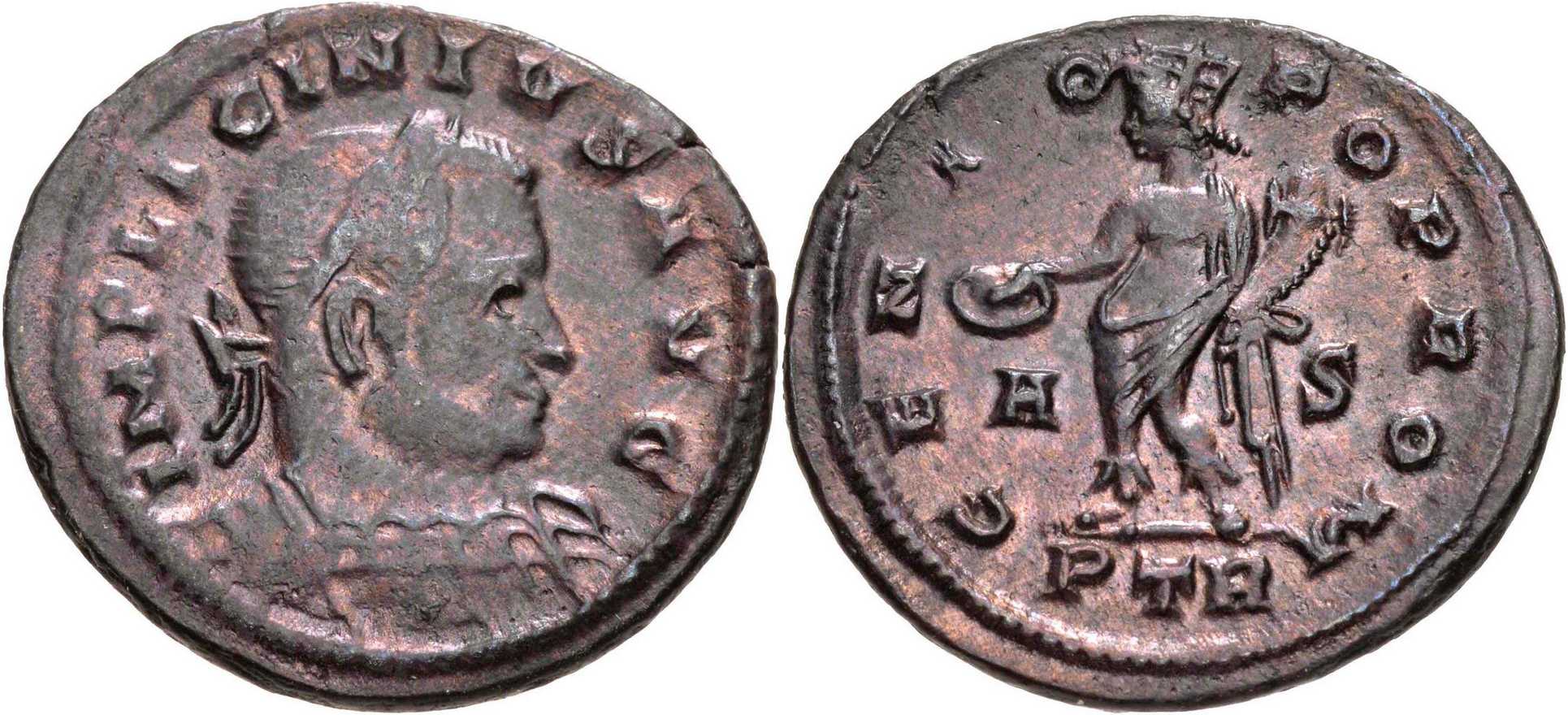 UNLISTED OBVERSE LEGEND. Not attested for this issue (p. 170). RIC lists only longer obv. legend: IMP LICINIVS P F AVG (p. 170; see example of TRIER 85). Coin should be listed after TRIER 85.