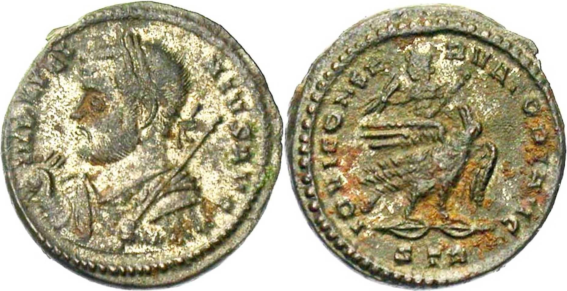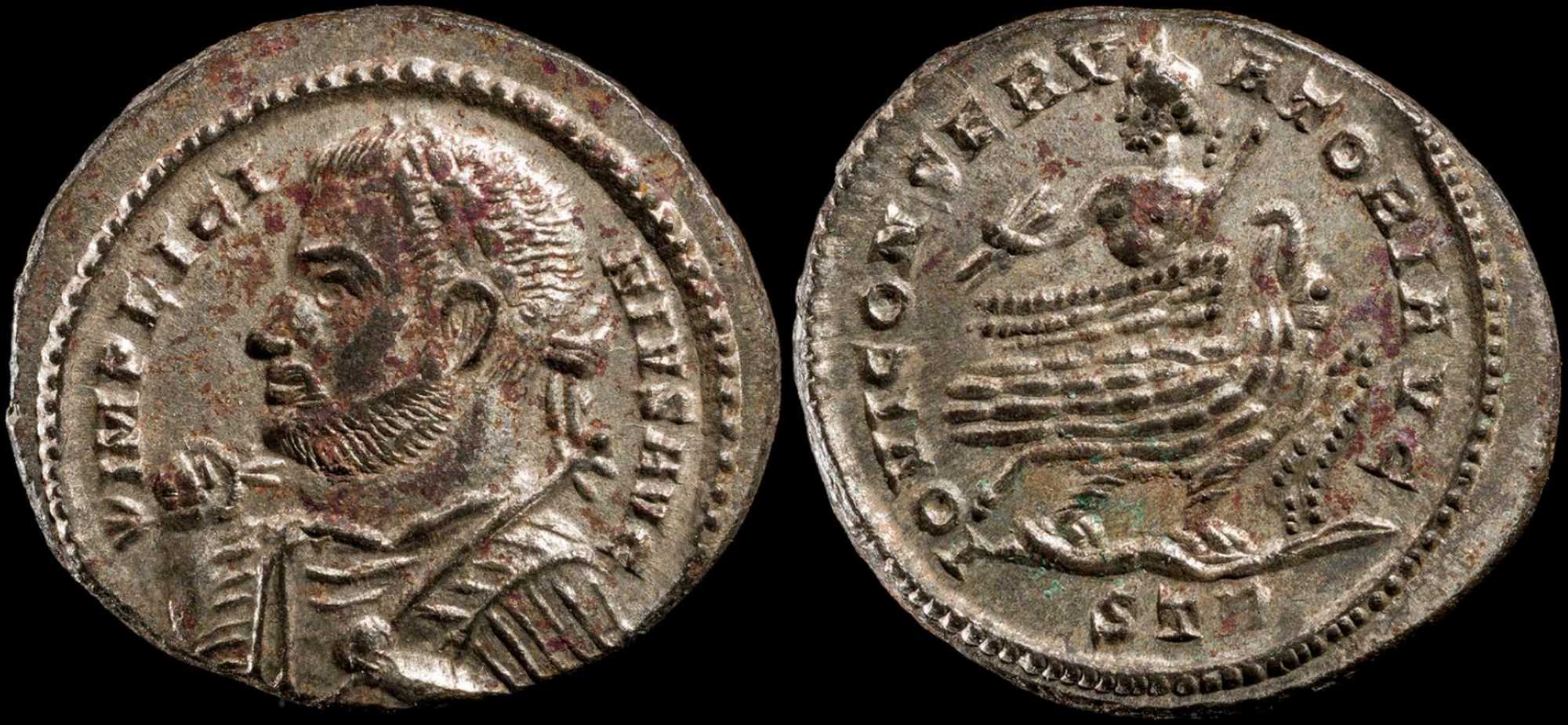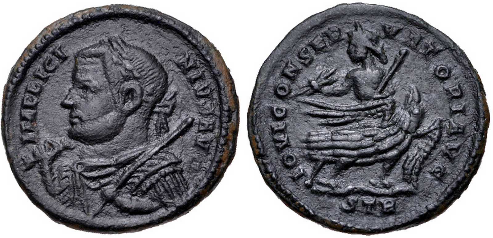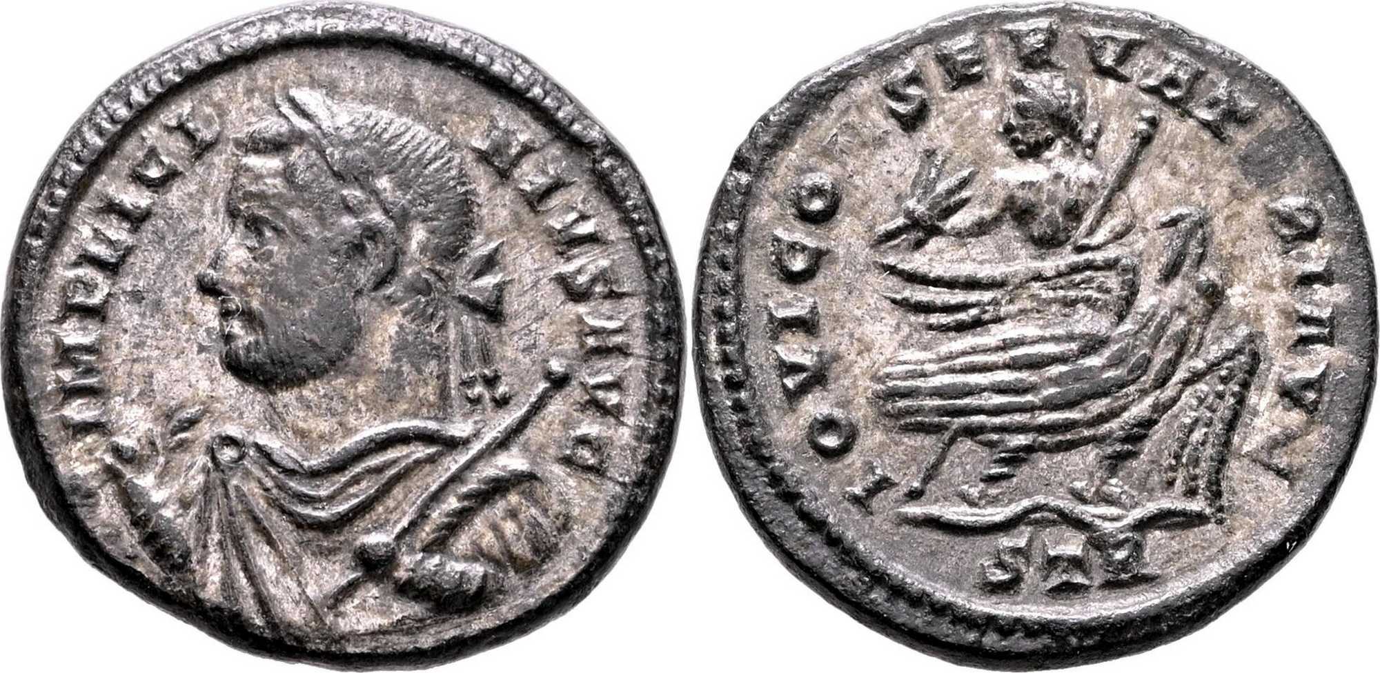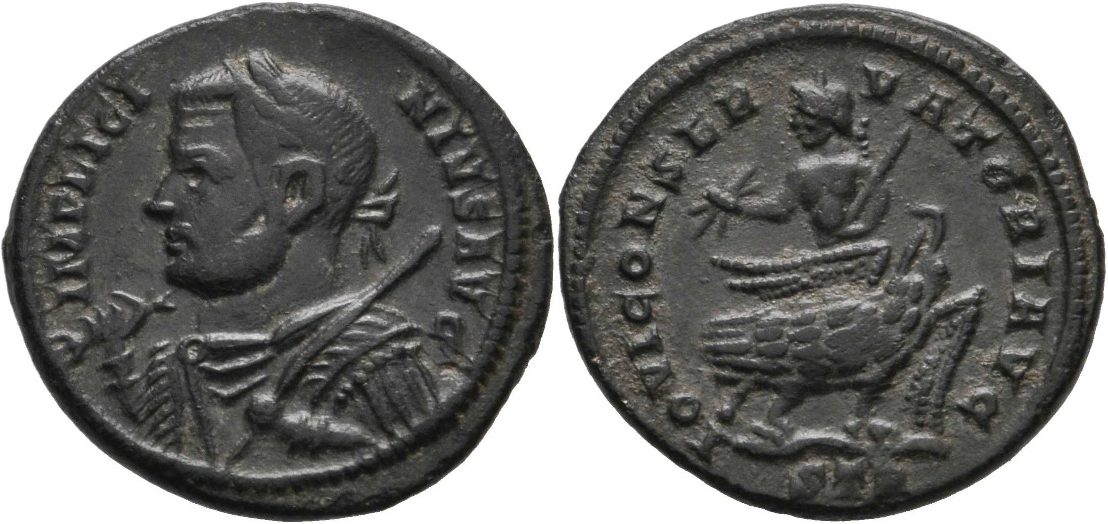 Billon argenteus. Weight 3.06 g; diameter 19 mm. Coin sold on CNG eAuction 232 (lot 356) in April 2010 for USD 155; sold on Naville Numismatics Live Auction 46 (lot 537) in January 2019 for GBP 150.