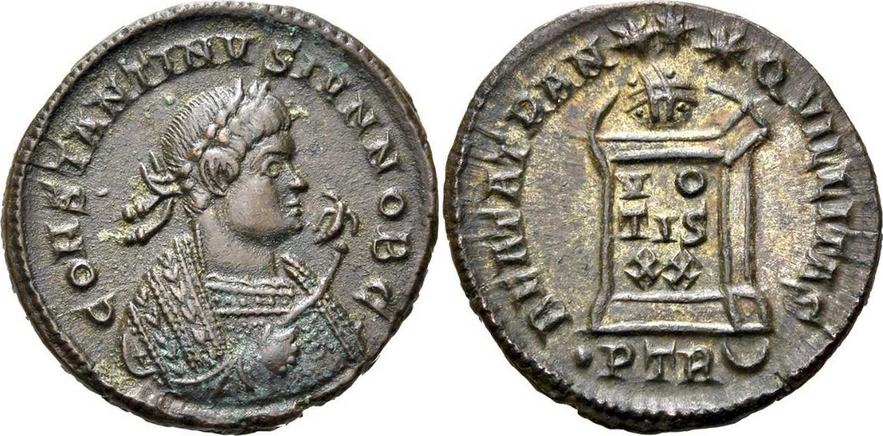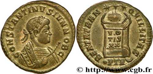 CONSTANTINVSIVNNOBC [CONSTANTINVS IVN NOB C]; bust r., laur., wearing trabea, sceptre in r. hand.