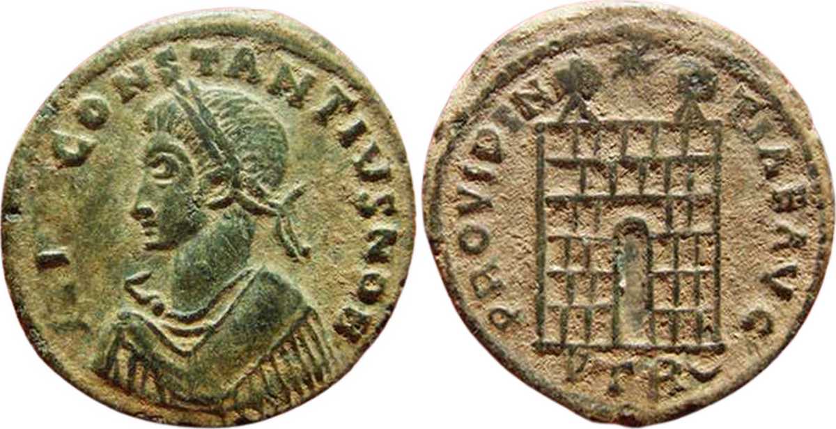 [FL]I[VL]CONSTANTIVSNOB [FL IVL CONSTANTIVS NOB]; bust l., laur., dr., cuir. [TRIER 480].